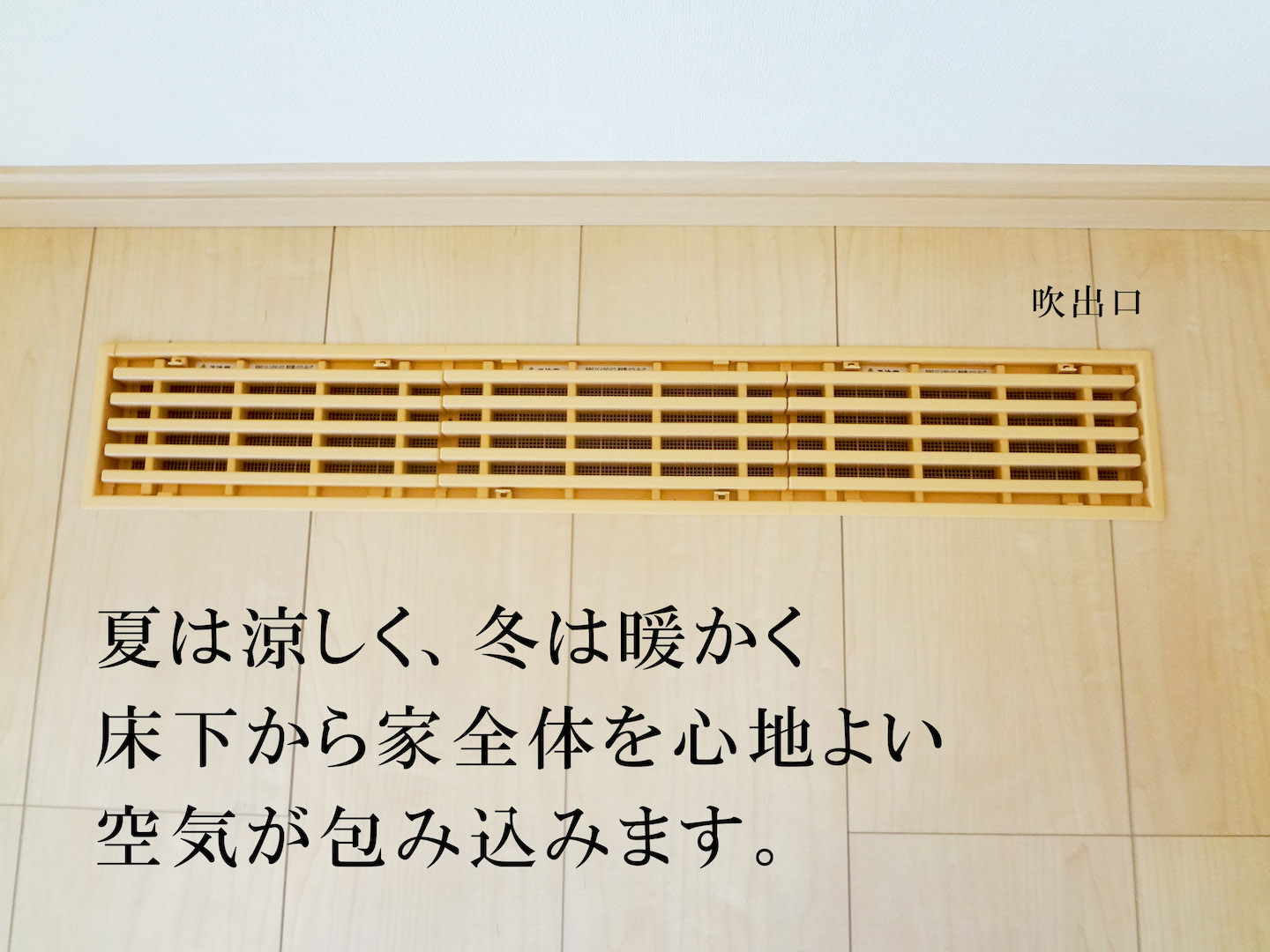 CCFとは「Clean air」「Circulation」「Floor comfort」の略で、床下冷暖房と全館空調システムが一体となったものです。夏は冷風、冬は温風が床下から吹き出し、家全体に冷気や温風を効率よく循環させます。